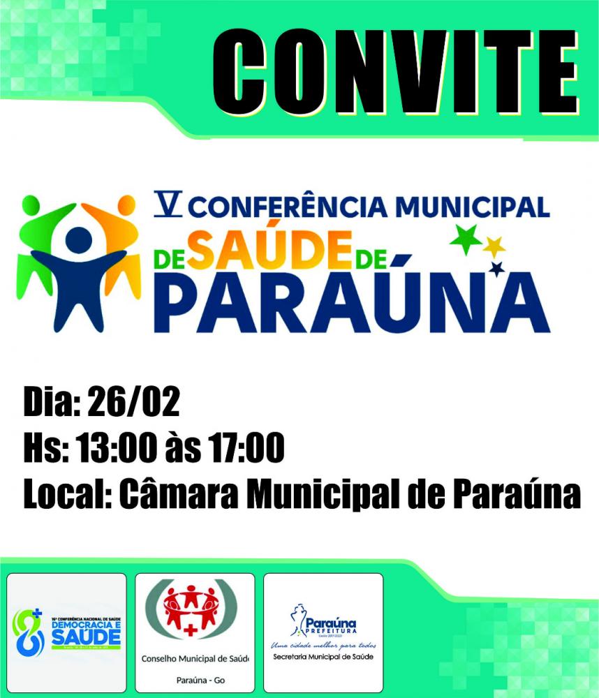 A V Etapa Municipal da Conferência Nacional de Saúde tem como tema: “Democracia e Saúde: Saúde como Direito e Consolidação e Financiamento do SUS”.
