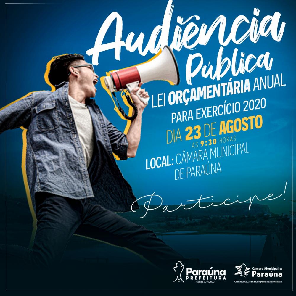 A Prefeitura Municipal de Paraúna convida para a Audiência Pública da Lei Orçamentária Anual para o Exercício 2020.